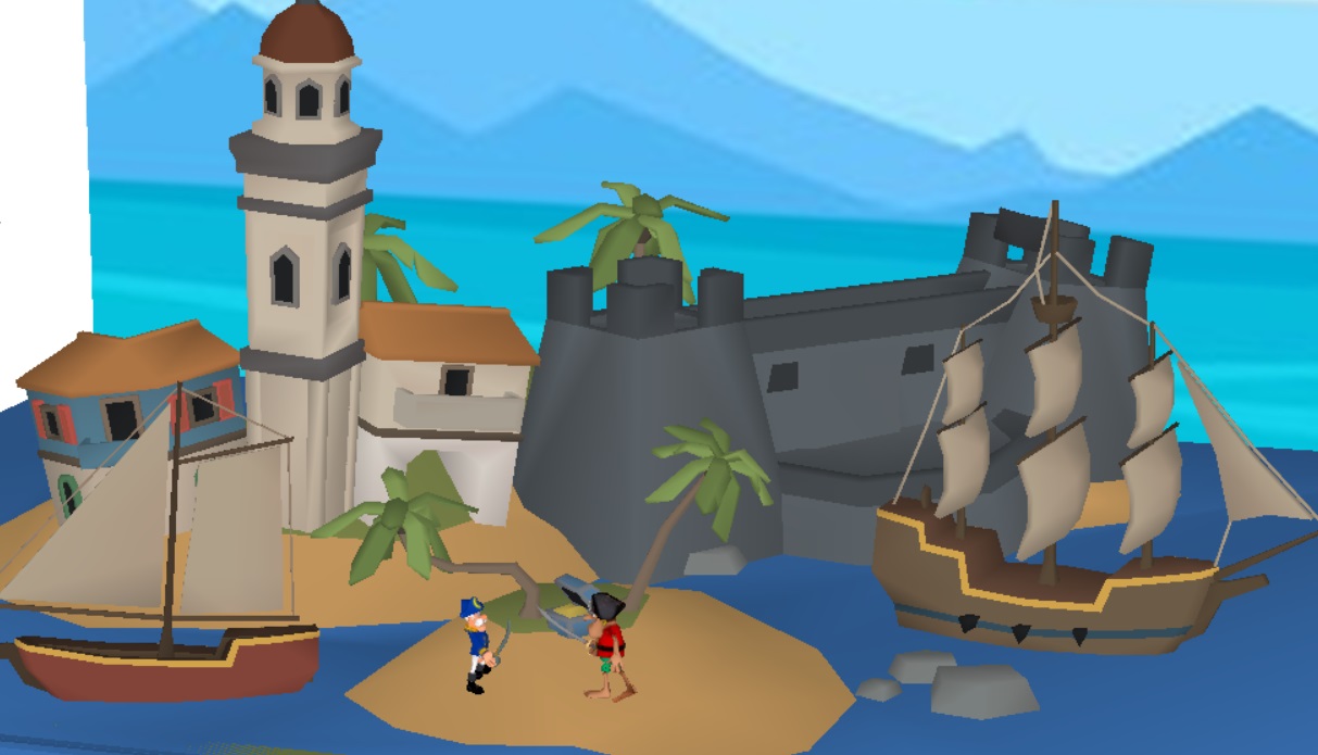 I had found  a nice low poly set of terrain hexagons on the rigmodels site. The islands, ships, buildings and treasure chest are all part of the desert island hex, reshaped to a square.